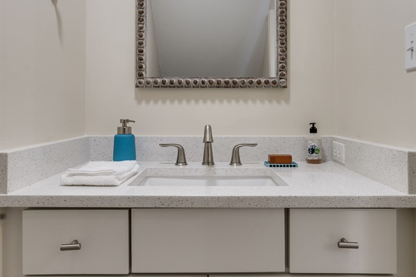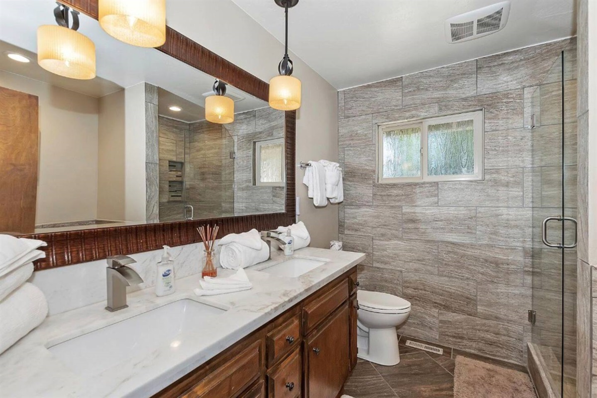For larger bathrooms, a double sink vanity offers additional space and functionality.